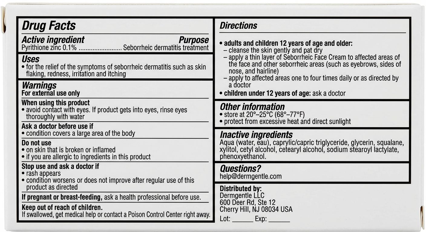 Dermgentle Seborrheic Face Cream by is a Otc medication manufactured, distributed, or labeled by Dermgentle LLC, PRIME ENTERPRISES, LLC. Drug facts, warnings, and ingredients follow.