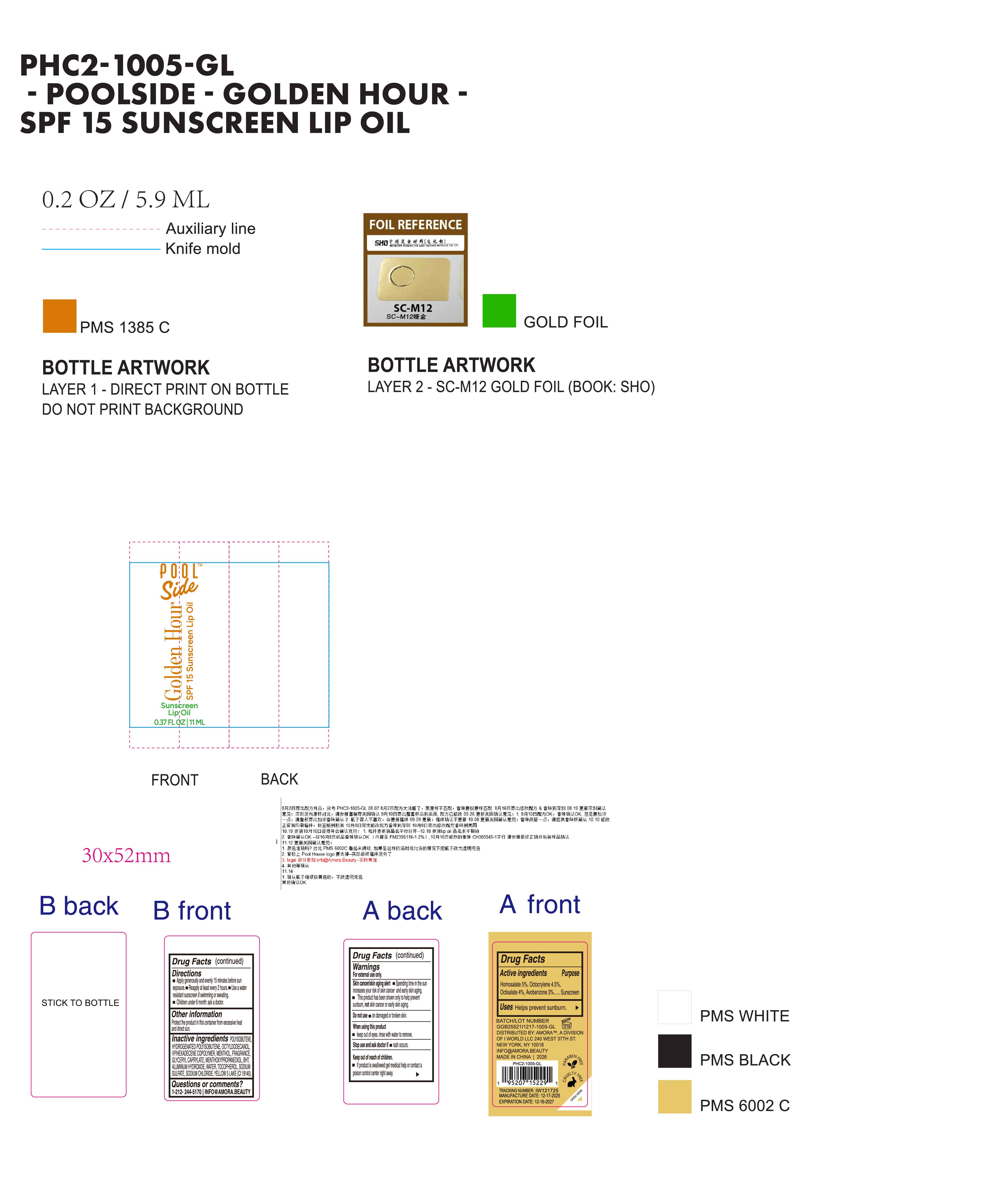 Poolside Golden Hour SPF15 sunscreen lip oil by is a Otc medication manufactured, distributed, or labeled by Longway Technology(Guangzhou)Co.,Ltd.. Drug facts, warnings, and ingredients follow.