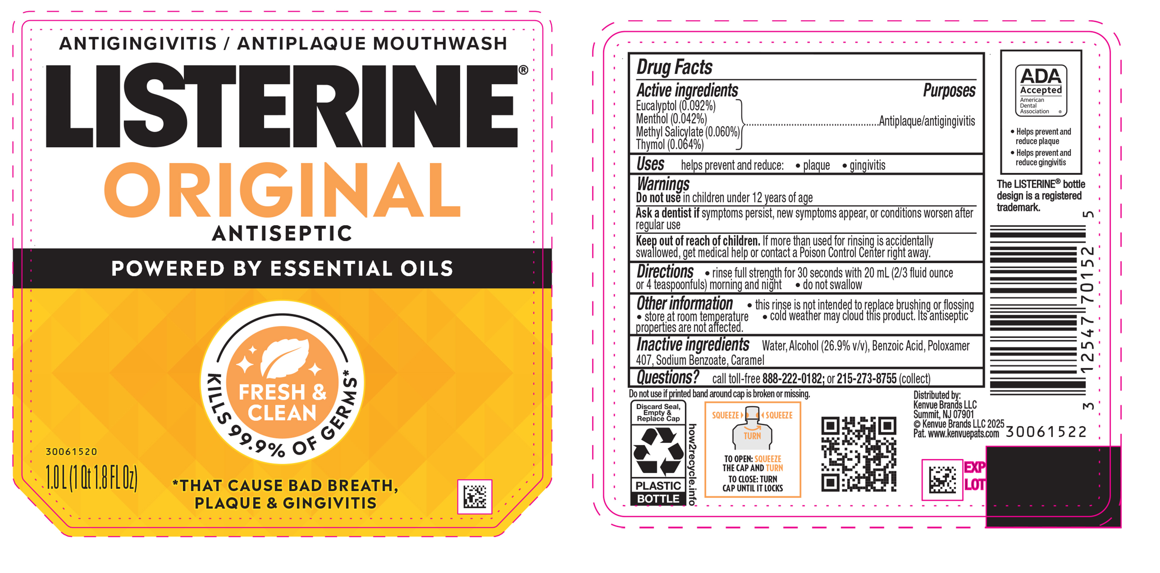 Listerine Original Intense Antiseptic Antigingivitis/ Antiplaque Mouthwash by is a Otc medication manufactured, distributed, or labeled by Kenvue Brands LLC. Drug facts, warnings, and ingredients follow.