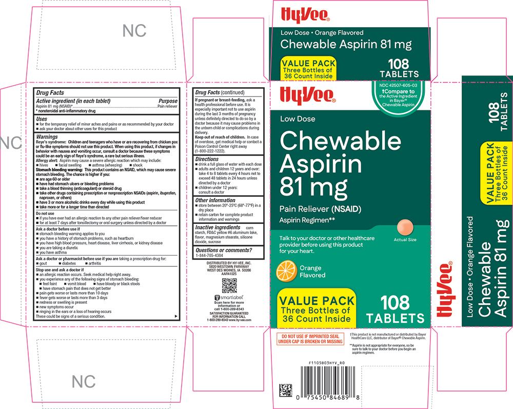 Chewable Aspirin 81 mg by is a Otc medication manufactured, distributed, or labeled by HYVEE INC. Drug facts, warnings, and ingredients follow.