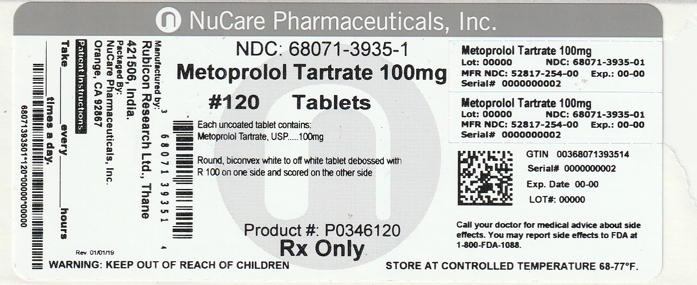 METOPROLOL TARTRATE by is a Prescription medication manufactured, distributed, or labeled by NuCare Pharmaceuticals, Inc.. Drug facts, warnings, and ingredients follow.