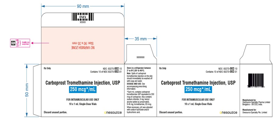 Carboprost Tromethamine by is a Prescription medication manufactured, distributed, or labeled by ONESOURCE SPECIALTY PHARMA LIMITED, Onesource Specialty Pte. Limited. Drug facts, warnings, and ingredients follow.