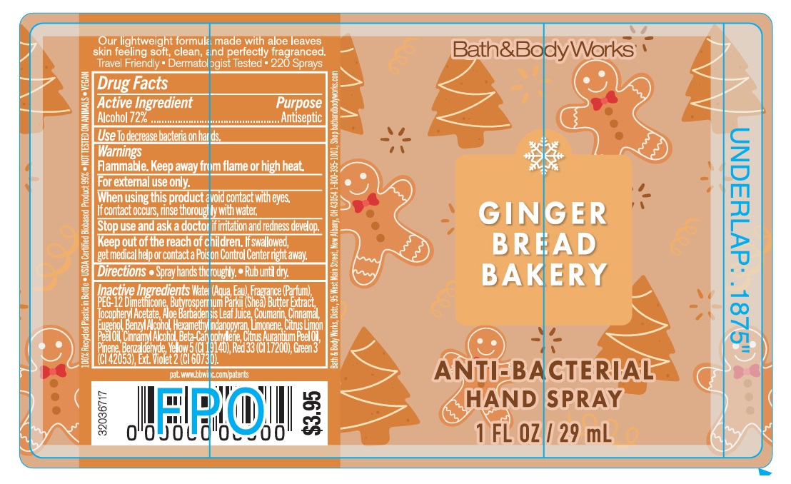 Anti-BacterialHandSpray by is a Otc medication manufactured, distributed, or labeled by Bath & Body Works, Inc., KDC US Holdings, Inc.. Drug facts, warnings, and ingredients follow.