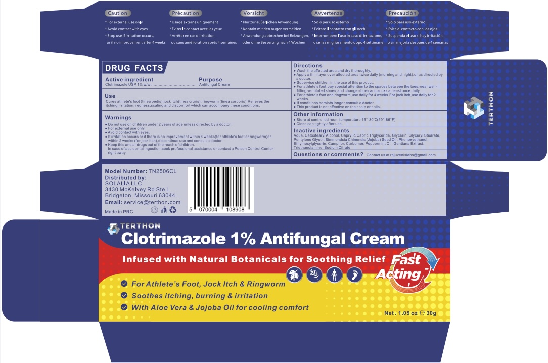 Terthon Clotrimazole 1% Antifungal Cream by is a Otc medication manufactured, distributed, or labeled by SOLALIA LLC. Drug facts, warnings, and ingredients follow.