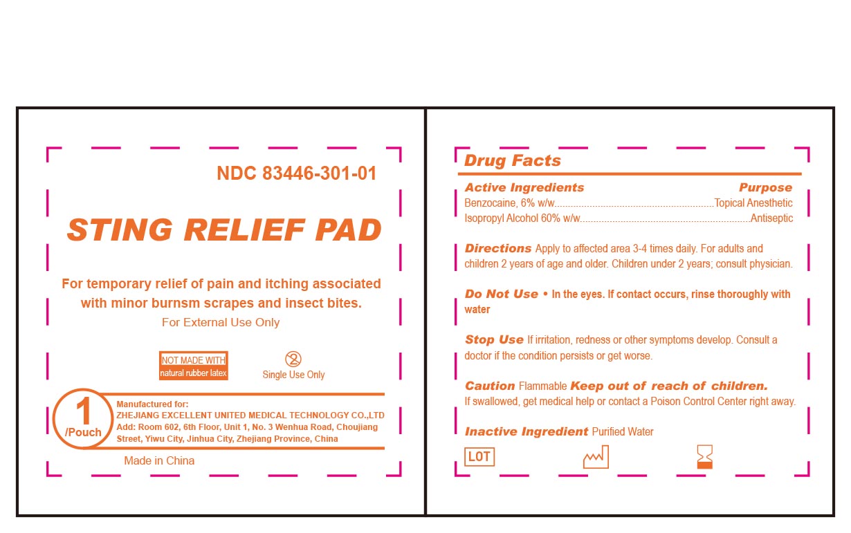 Sting Relief Pad by is a Otc medication manufactured, distributed, or labeled by JINHUA JINGDI MEDICAL SUPPLIES CO., LTD, JINHUA JINGDI MEDICAL SUPPLIES CO.,LTD. Drug facts, warnings, and ingredients follow.