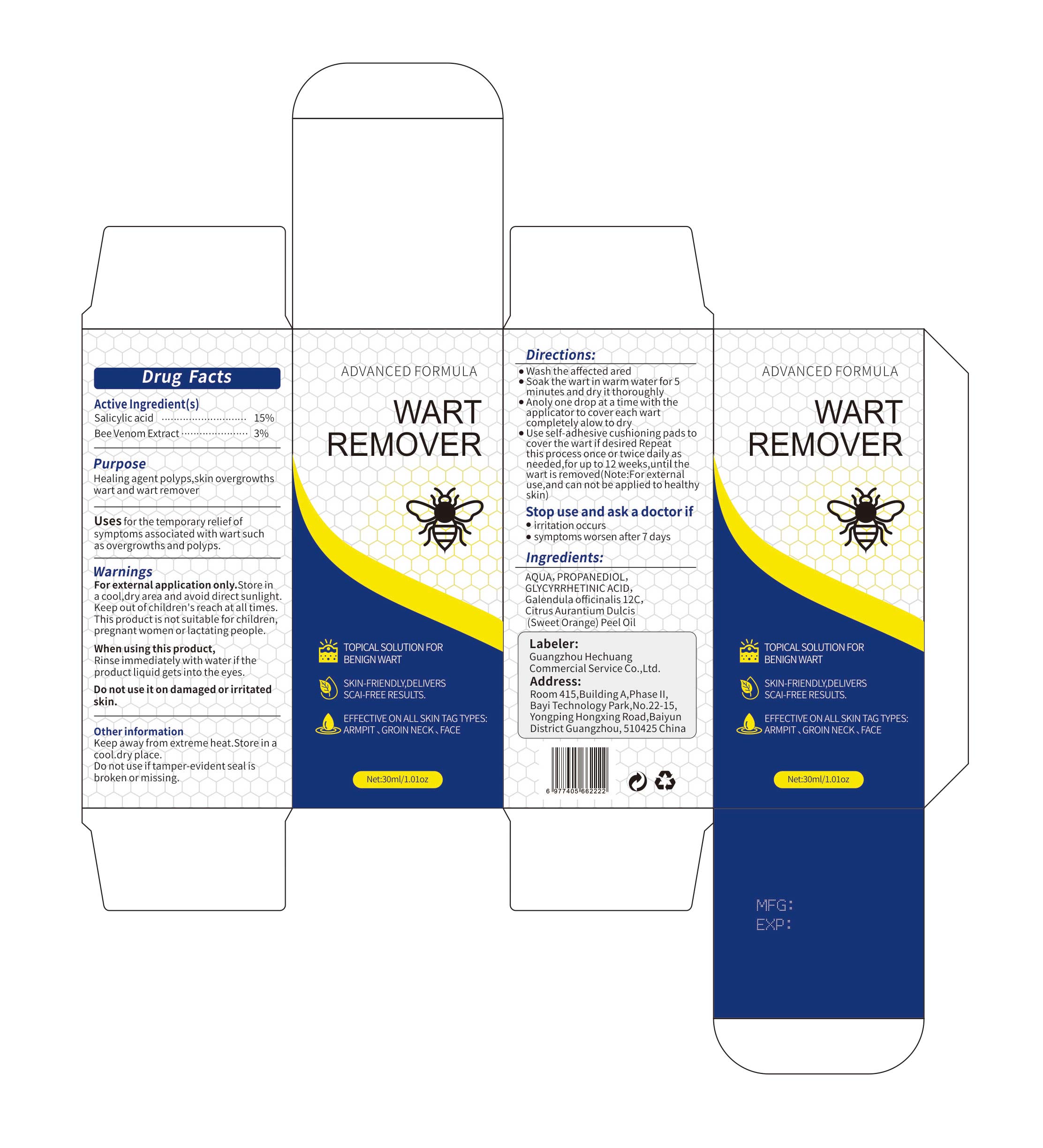 Wart Remover by is a Otc medication manufactured, distributed, or labeled by Guangzhou Hechuang Commercial Service Co.,Ltd.. Drug facts, warnings, and ingredients follow.