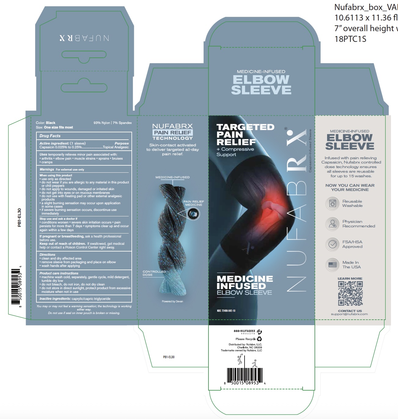 Nufabrx Elbow Sleeve by is a Otc medication manufactured, distributed, or labeled by Nufabrx LLC. Drug facts, warnings, and ingredients follow.
