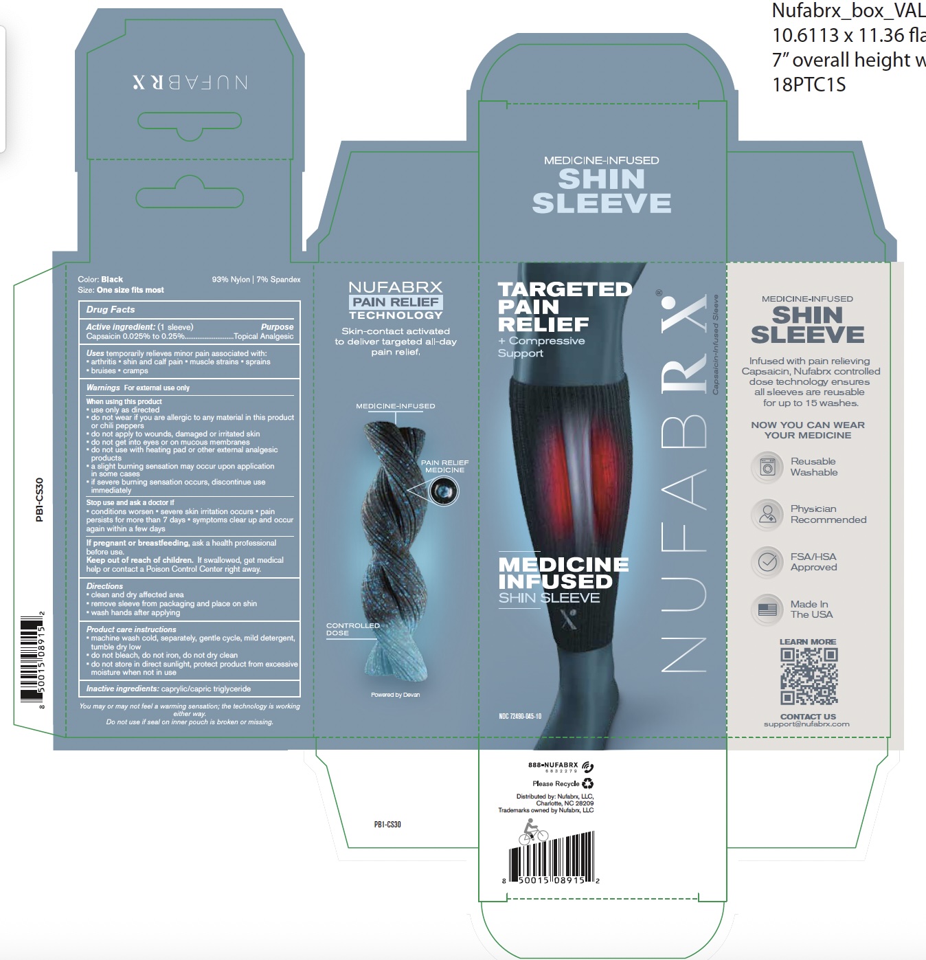 Nufabrx Shin Sleeve by is a Otc medication manufactured, distributed, or labeled by Nufabrx LLC. Drug facts, warnings, and ingredients follow.