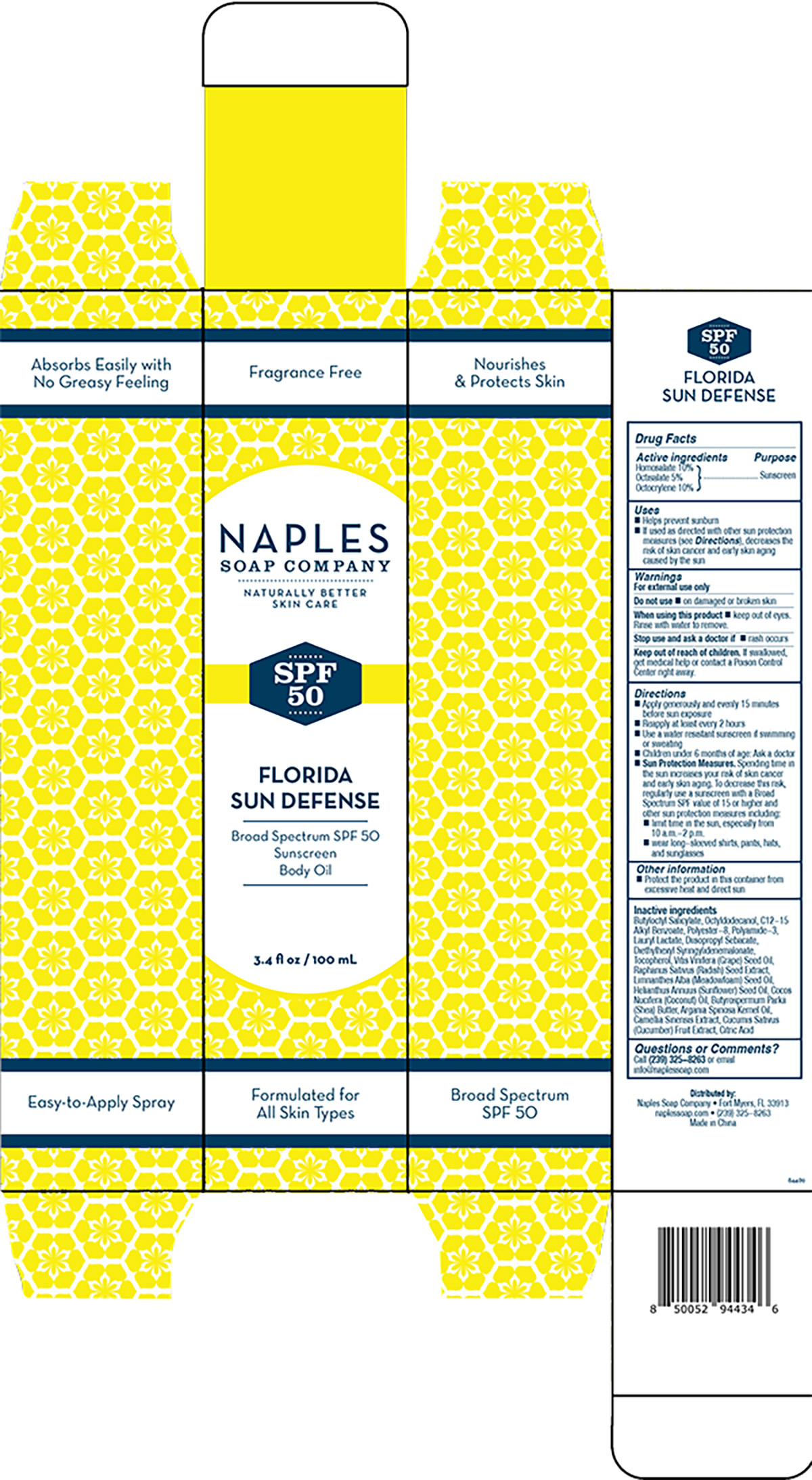 SPF 50 Florida Sun Defense by is a Otc medication manufactured, distributed, or labeled by Naples Soap Company, Inc.. Drug facts, warnings, and ingredients follow.