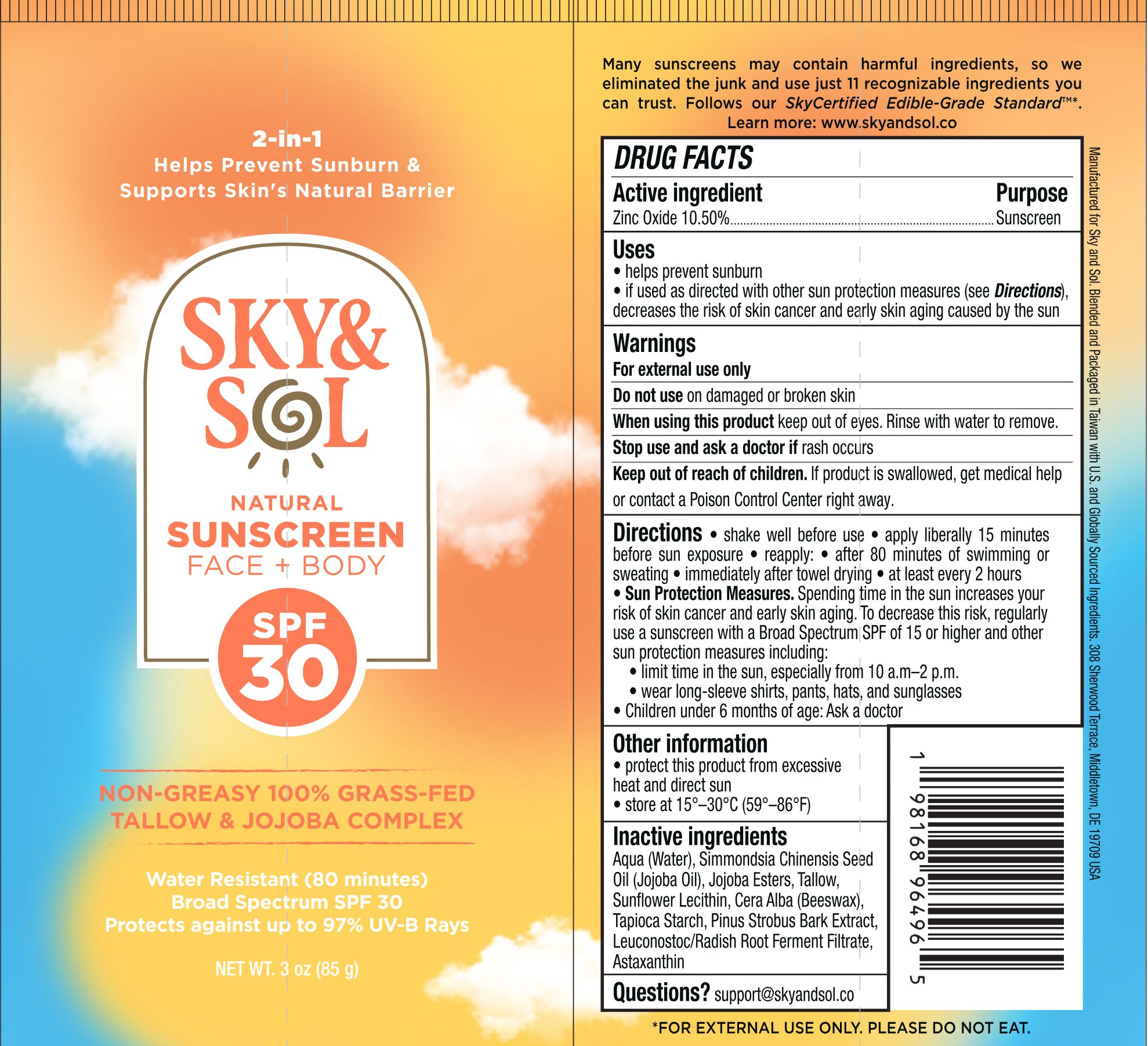 | SKY AND SOL FACE AND BODY SUNSCREEN SPF 30