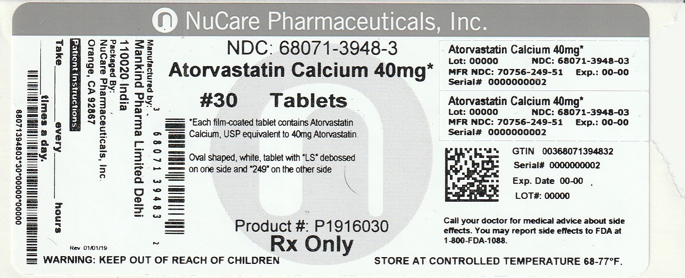 Atorvastatin calcium tablets, USP 40 mg(40 mg of atorvastatin): White, oval shaped, film-coated tablet with "LS" debossed on one side of the tablet and "249" debossed on the other side of the tablet.