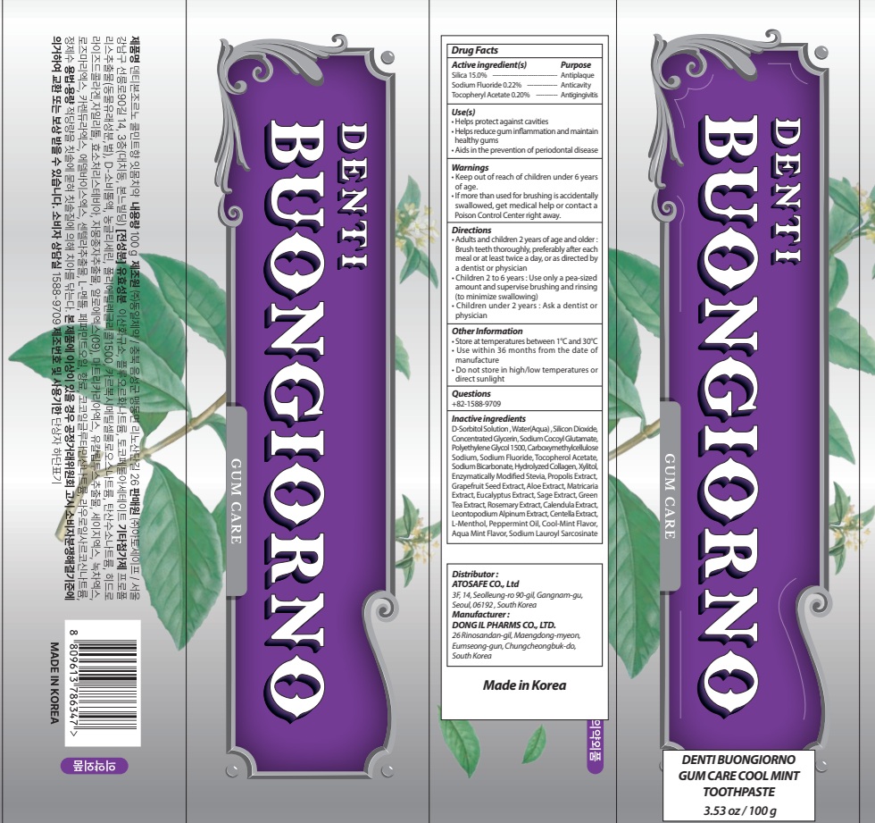 DENTI BUONGIORNO GUM CARE COOL MINT TOOTH by is a Otc medication manufactured, distributed, or labeled by DONG IL PHARMS CO.,LTD, DONG IL PHARMS CO., LTD.. Drug facts, warnings, and ingredients follow.