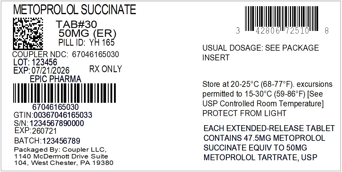 Metoprolol Succinate Extended-Release Tablets USP, 50 mg are white film coated oval shape tablets, scored on two sides, debossed with “Y” and “H” on one side and debossed with “165” on the other side.
