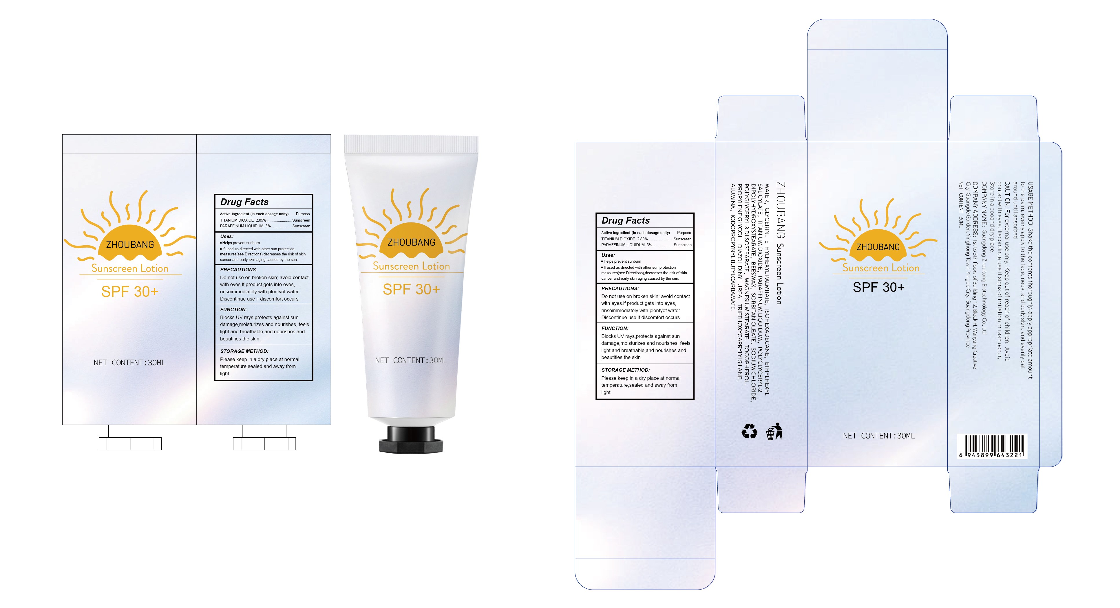 sunscreen by is a Otc medication manufactured, distributed, or labeled by Guangdong Zhoubang Biotechnology Co., Ltd. Drug facts, warnings, and ingredients follow.