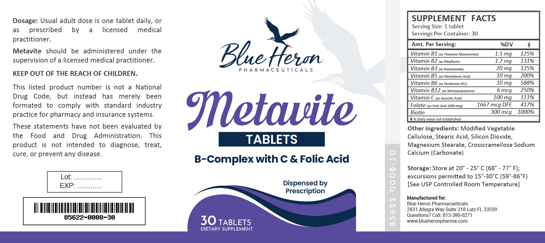 Metavite by is a Other medication manufactured, distributed, or labeled by Blue Heron Pharmaceuticals, LLC. Drug facts, warnings, and ingredients follow.