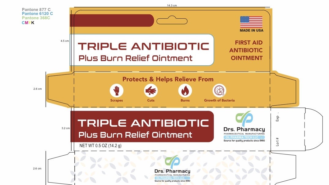 Drs. Pharmacy Triple Antibiotic AND BURN RELIEF by is a Otc medication manufactured, distributed, or labeled by OL PHARMA TECH, LLC Drs PHARMACY. Drug facts, warnings, and ingredients follow.