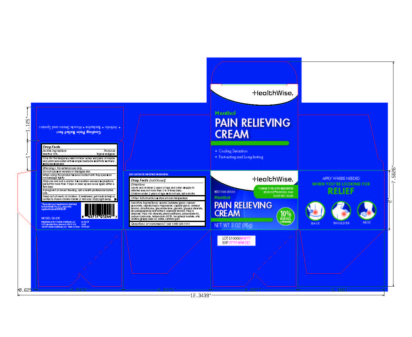 HealthWise Pain Relieving Cream by is a Otc medication manufactured, distributed, or labeled by Veridian Healthcare , Nantong Health & Beyond Hygienic Products Inc.. Drug facts, warnings, and ingredients follow.