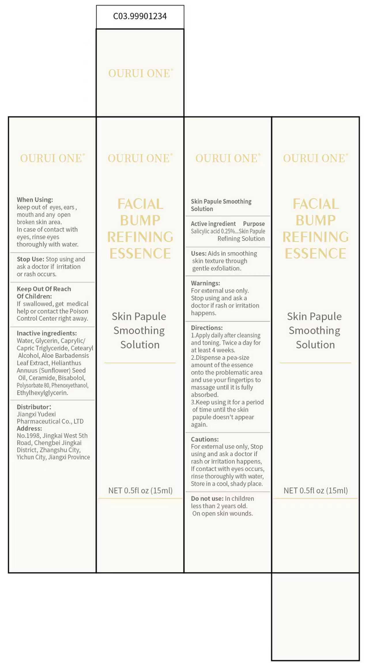 OURUI ONE FACIAL BUMP REFINING ESSENCE by is a Otc medication manufactured, distributed, or labeled by Jiangxi Yudexi Pharmaceutical Co., LTD. Drug facts, warnings, and ingredients follow.