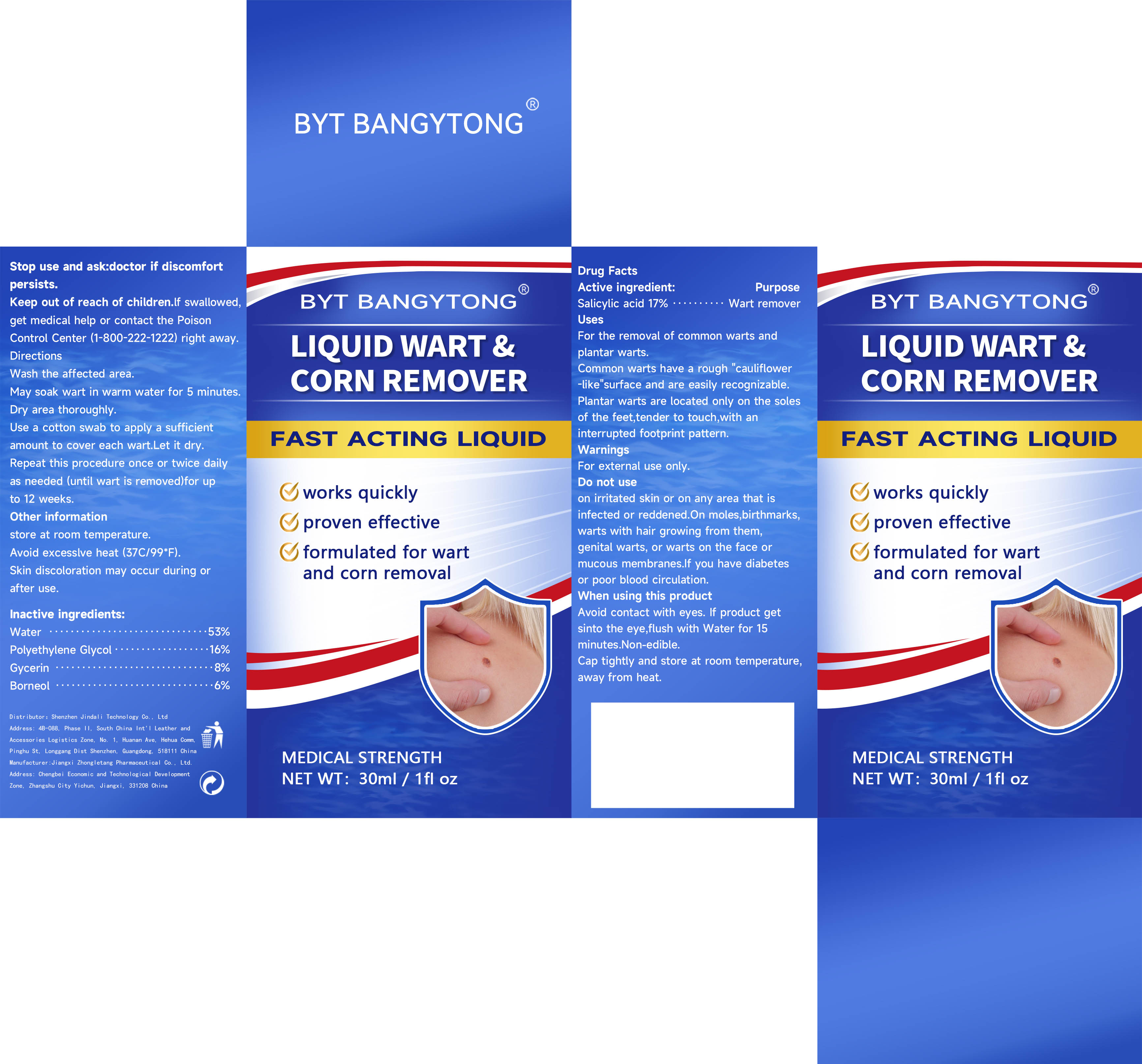 BYT BANGYTONG Salicylic acid wart removal solution by is a Otc medication manufactured, distributed, or labeled by Shenzhen Jindali Technology Co., Ltd. Drug facts, warnings, and ingredients follow.