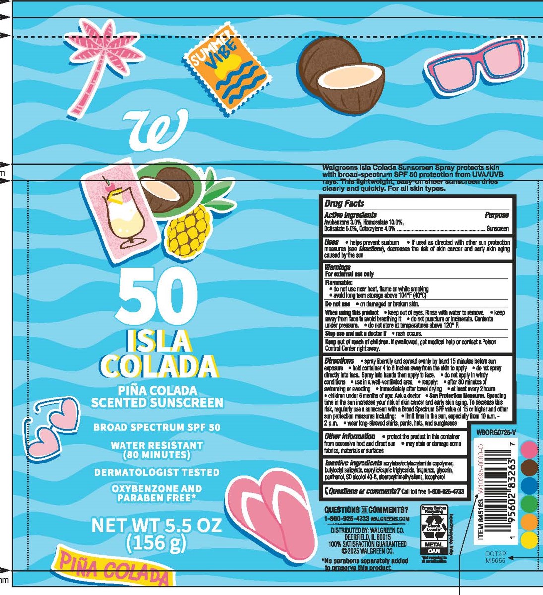 Walgreens 50 Pina Colada Scented Sunscreen by is a Otc medication manufactured, distributed, or labeled by WALGREEN COMPANY. Drug facts, warnings, and ingredients follow.