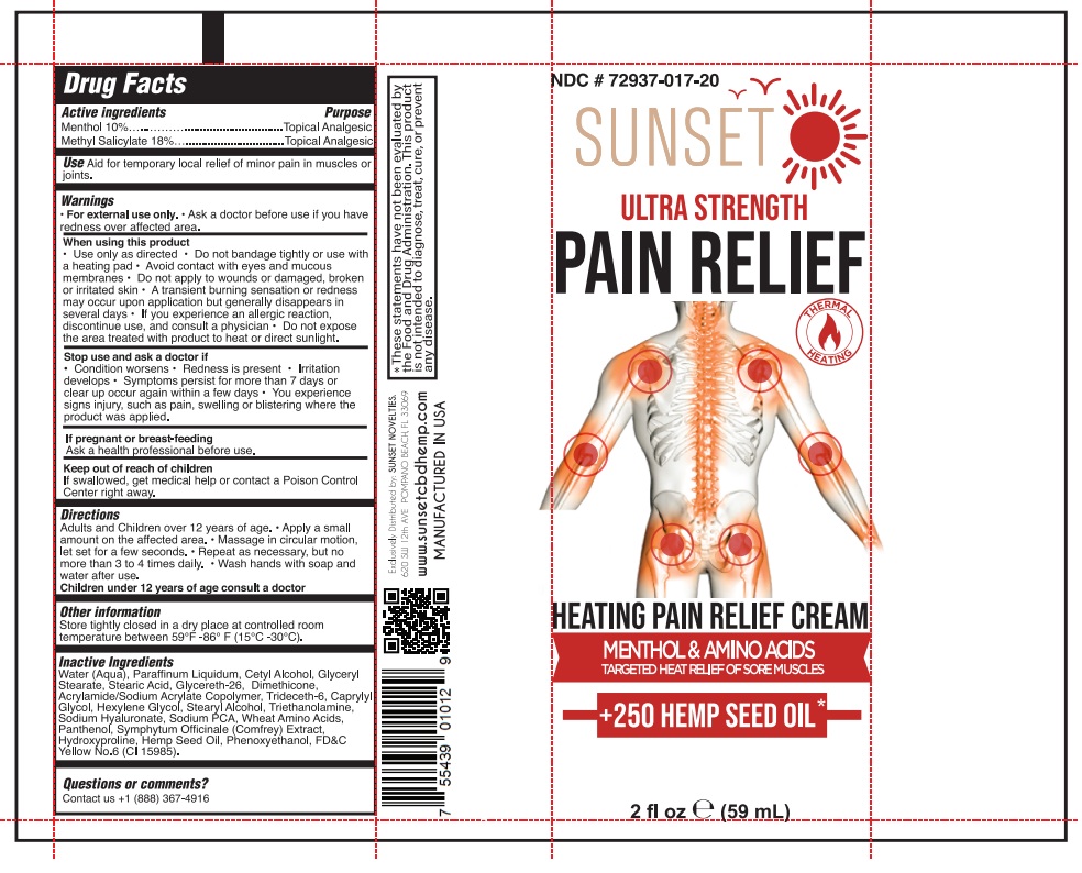 HEATING PAIN RELIEF by is a Otc medication manufactured, distributed, or labeled by SUNSET NOVELTIES, INC. Drug facts, warnings, and ingredients follow.