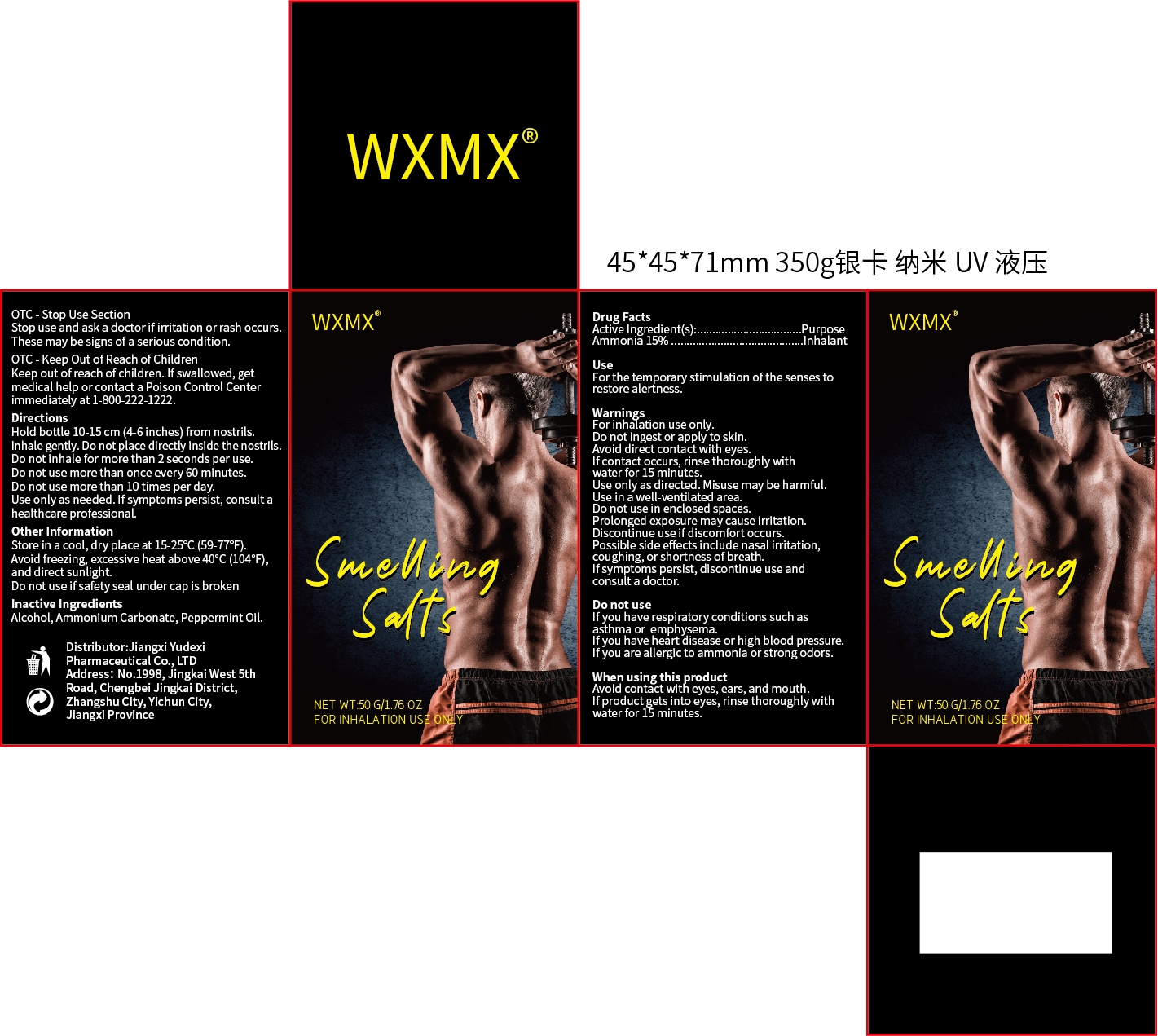WXMX Smelling Salts by is a Otc medication manufactured, distributed, or labeled by Jiangxi Yudexi Pharmaceutical Co., LTD. Drug facts, warnings, and ingredients follow.