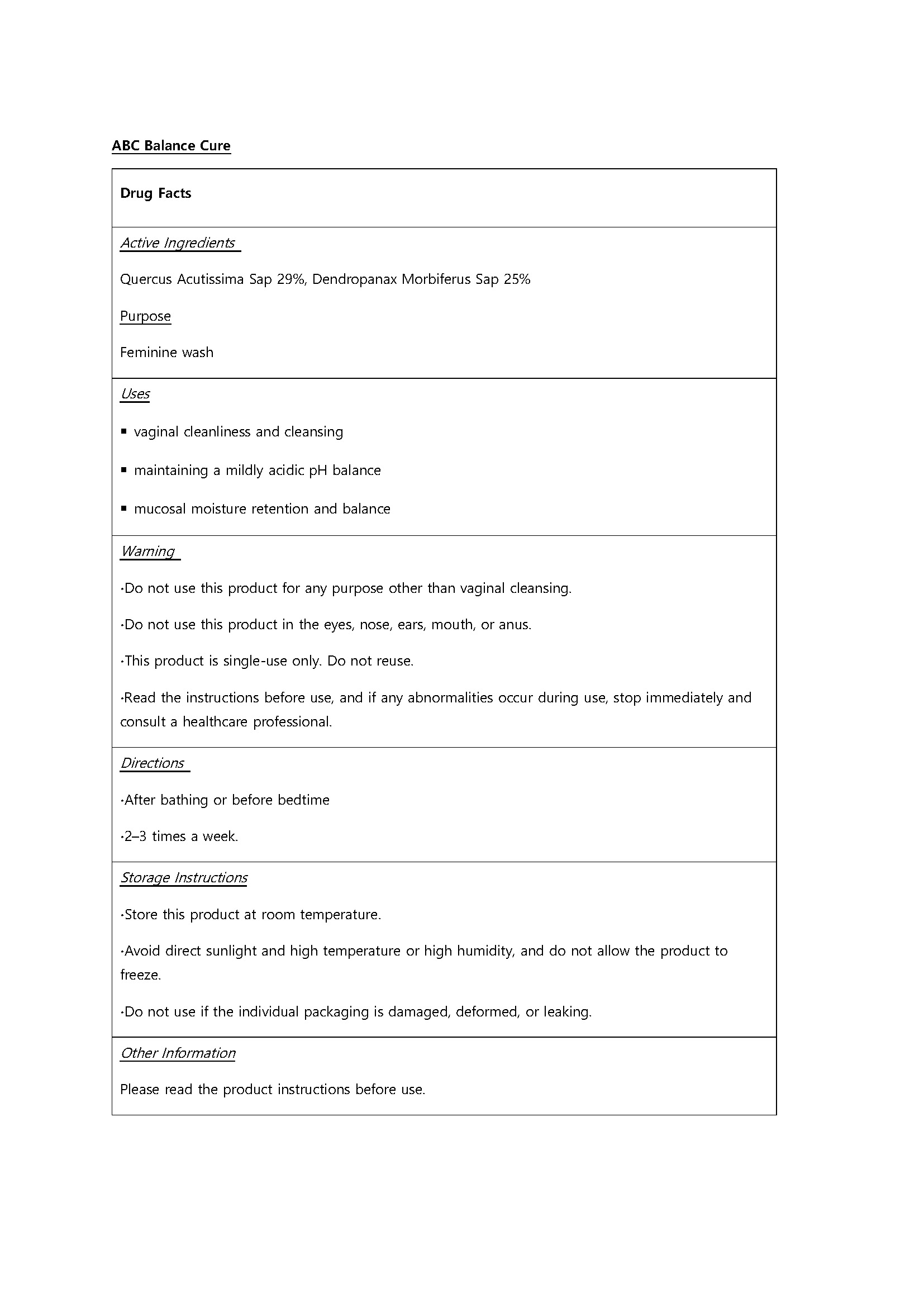 ABC Balance Cure by is a Otc medication manufactured, distributed, or labeled by ABCPharm co.,LTD. Drug facts, warnings, and ingredients follow.