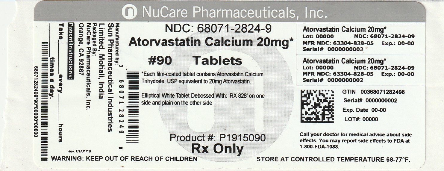 20 mg of atorvastatin: white, elliptical, film-coated tablets, debossed with ‘ RX 828’ on one side and plain on the other side