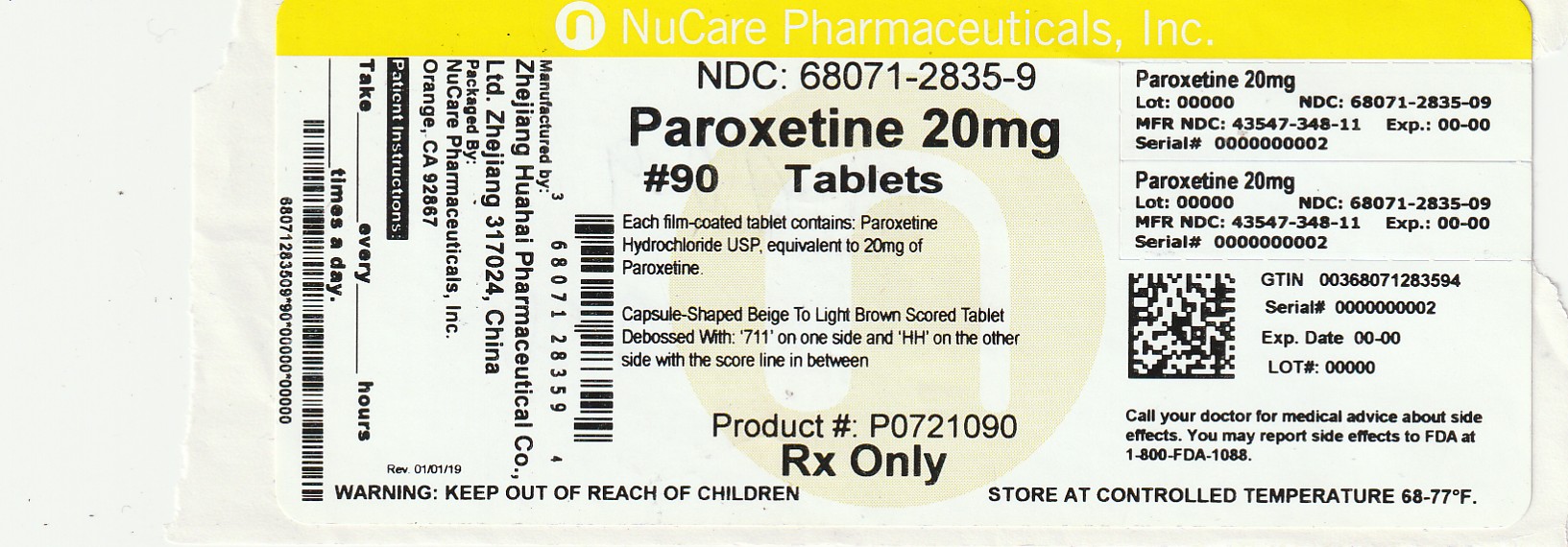 Paroxetine by is a Prescription medication manufactured, distributed, or labeled by NuCare Pharmaceuticals, Inc.. Drug facts, warnings, and ingredients follow.