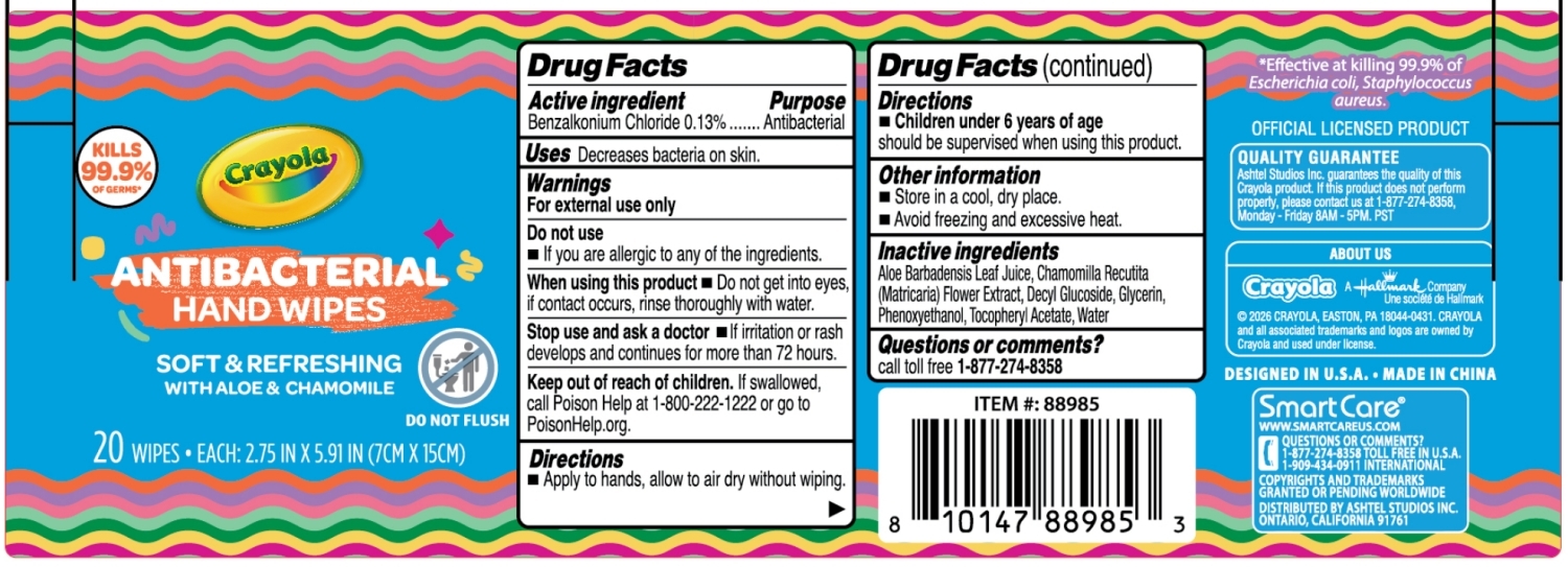 Crayola ANTIBACTERIAL HAND WIPES by is a Otc medication manufactured, distributed, or labeled by ASHTEL STUDIOS INC.. Drug facts, warnings, and ingredients follow.