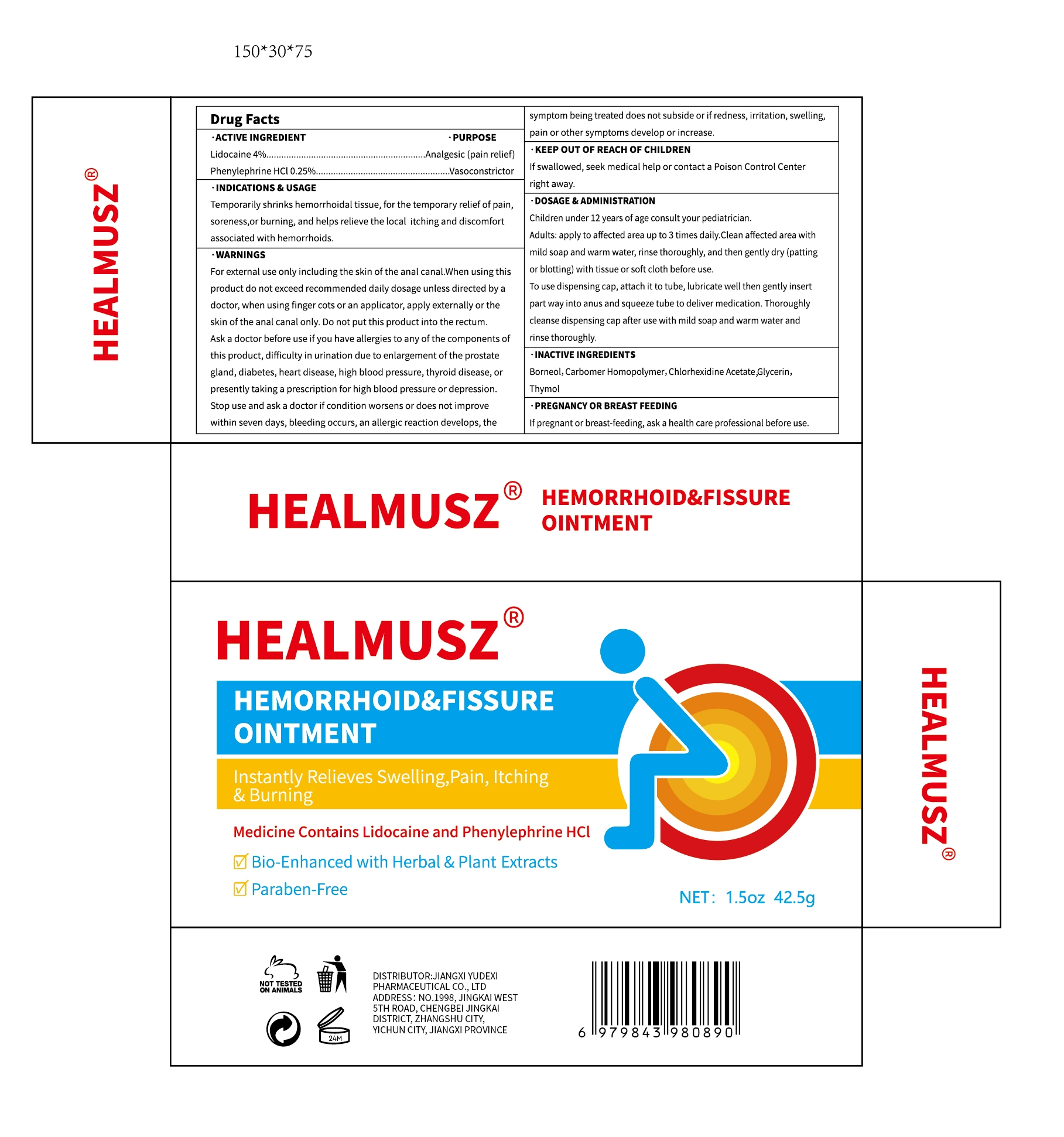HEALMUSZ HEMORRHOID FISSURE by is a Otc medication manufactured, distributed, or labeled by Jiangxi Yudexi Pharmaceutical Co., LTD. Drug facts, warnings, and ingredients follow.