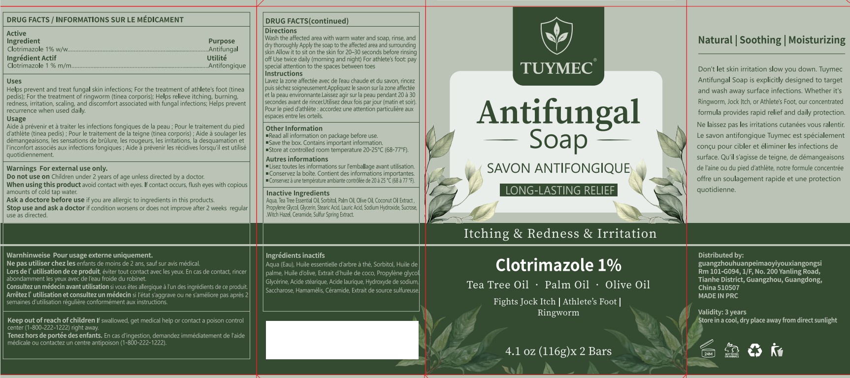 Tuymec Antifungal Medicated Bar by is a Otc medication manufactured, distributed, or labeled by Guangzhou Jingliang Cosmetics Co., Ltd.. Drug facts, warnings, and ingredients follow.