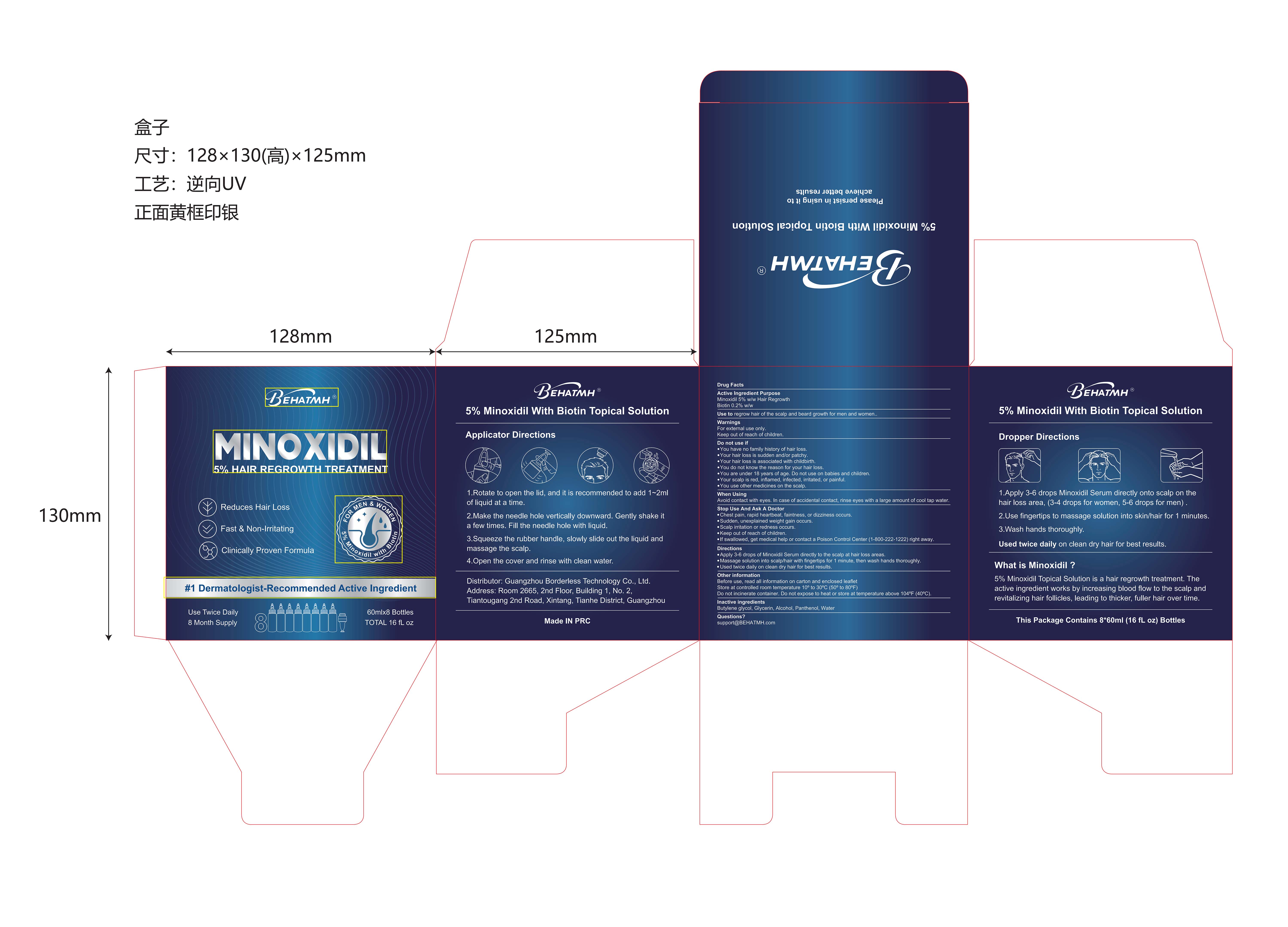BEHATMH 5% MINOXIDIL HAIR REGROWTH SERUM With Biotin by is a Otc medication manufactured, distributed, or labeled by Guangzhou Borderless Technology Co., Ltd.. Drug facts, warnings, and ingredients follow.