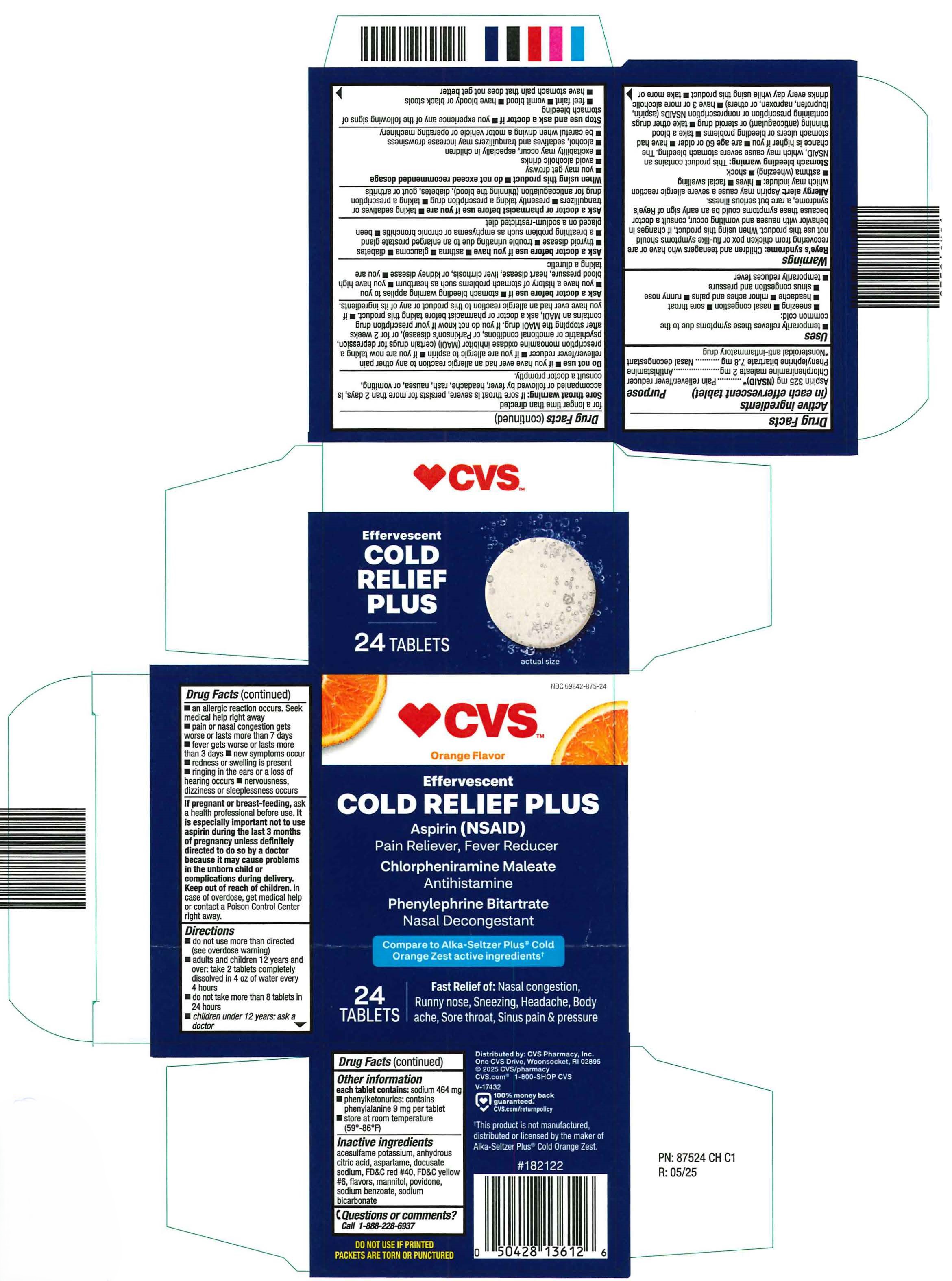 Effervescent Orange Cold Relief by is a Otc medication manufactured, distributed, or labeled by CVS Pharmacy, Inc.. Drug facts, warnings, and ingredients follow.
