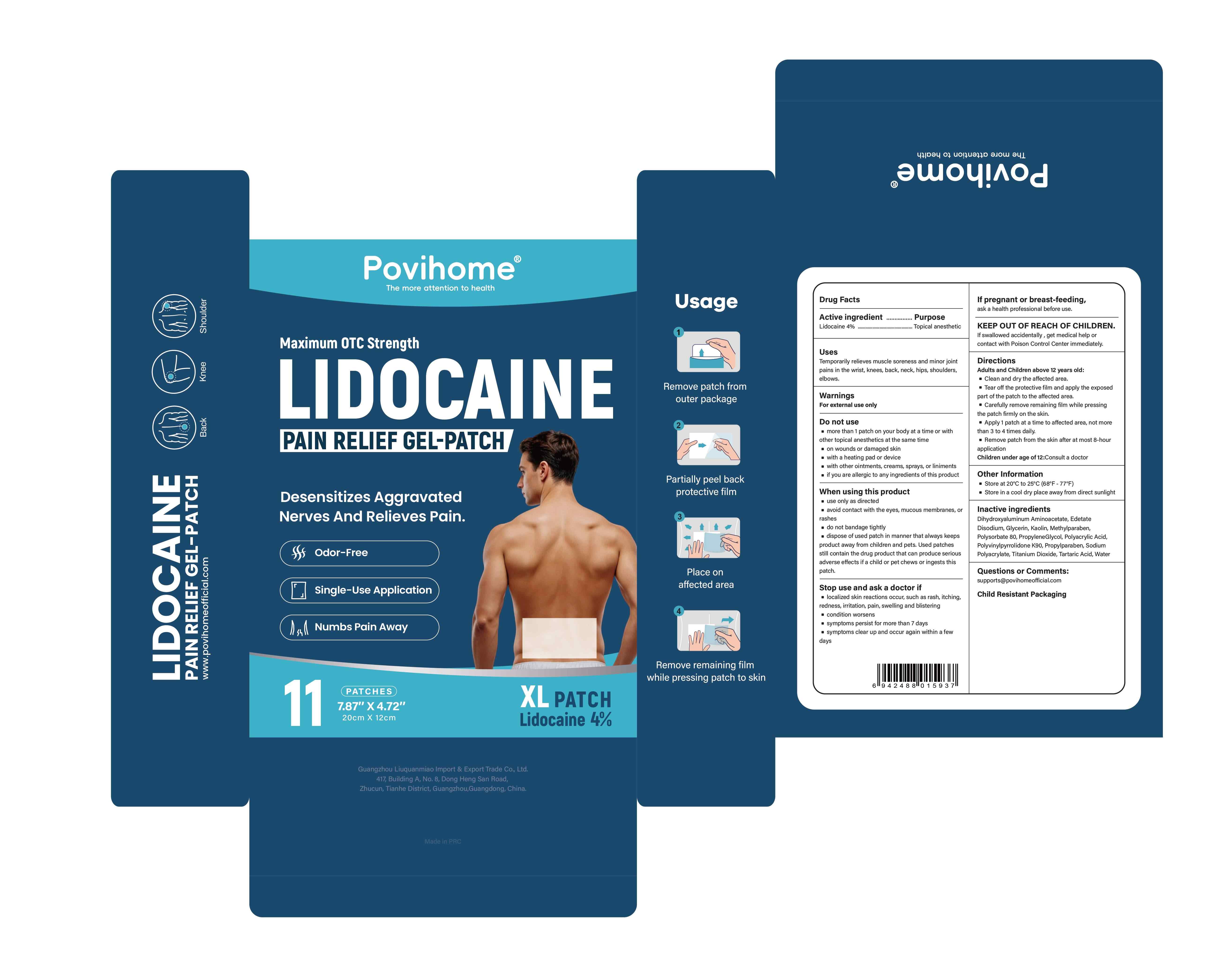 Lidocaine Pain Relief Gel -Patch by is a Otc medication manufactured, distributed, or labeled by Guangzhou Liuquanmiao Import & Export Trade Co., Ltd.. Drug facts, warnings, and ingredients follow.
