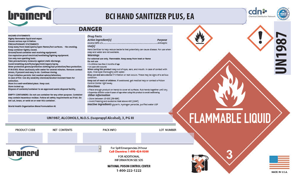 Hand Sanitizer Plus, EA by is a Otc medication manufactured, distributed, or labeled by Brainerd Chemical Company Inc.,. Drug facts, warnings, and ingredients follow.