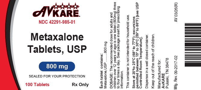 Metaxalone by is a Prescription medication manufactured, distributed, or labeled by AvKARE. Drug facts, warnings, and ingredients follow.
