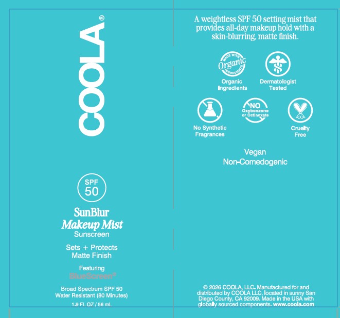 COOLA SunBlur Makeup Mist SPF 50 by is a Otc medication manufactured, distributed, or labeled by COOLA LLC, Bell International Laboratories, Incorporated. Drug facts, warnings, and ingredients follow.