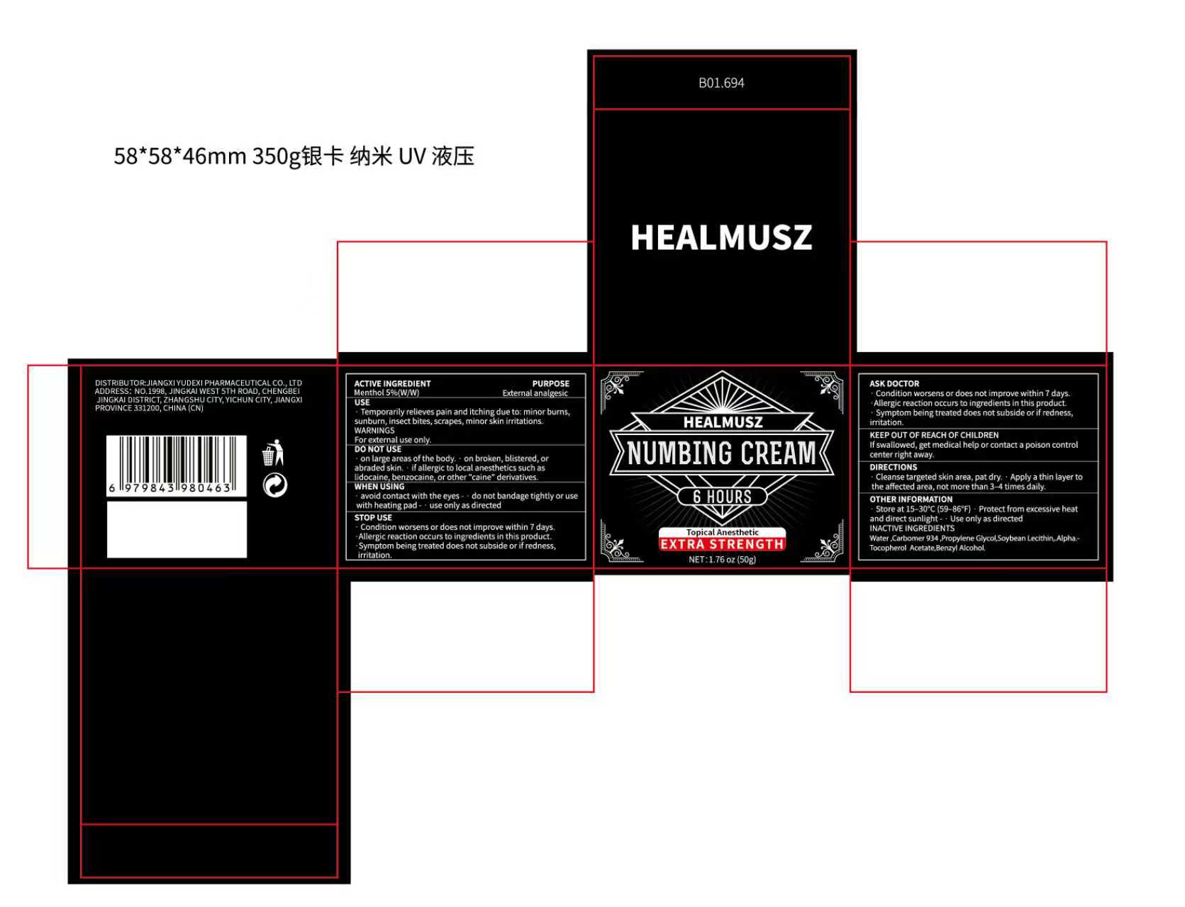 HEALMUSZ NUMBING by is a Otc medication manufactured, distributed, or labeled by Jiangxi Yudexi Pharmaceutical Co., LTD. Drug facts, warnings, and ingredients follow.