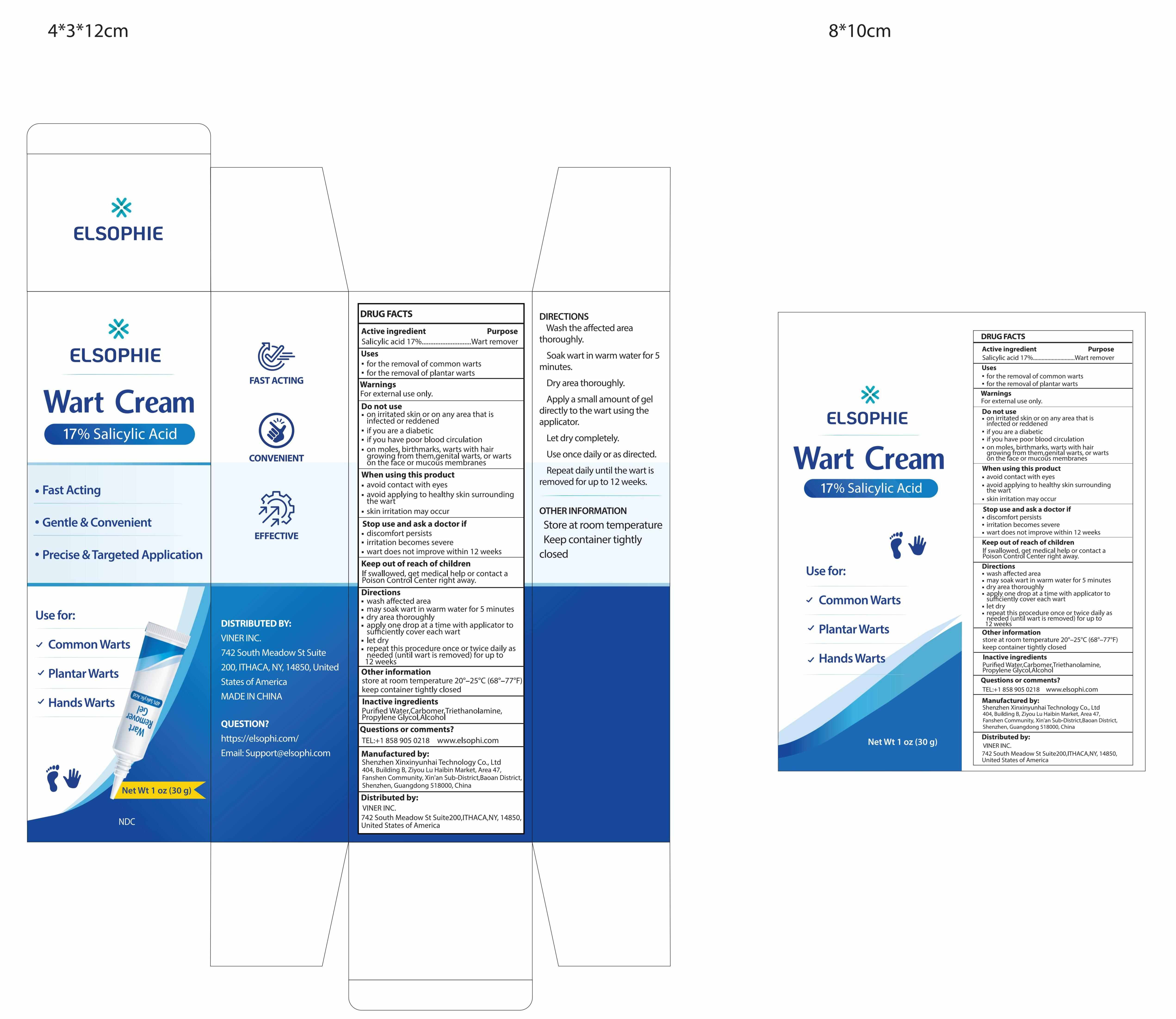 Elsophie Wart Cream by is a Otc medication manufactured, distributed, or labeled by Shenzhen Xinxin Yunhai Technology Co., Ltd.. Drug facts, warnings, and ingredients follow.