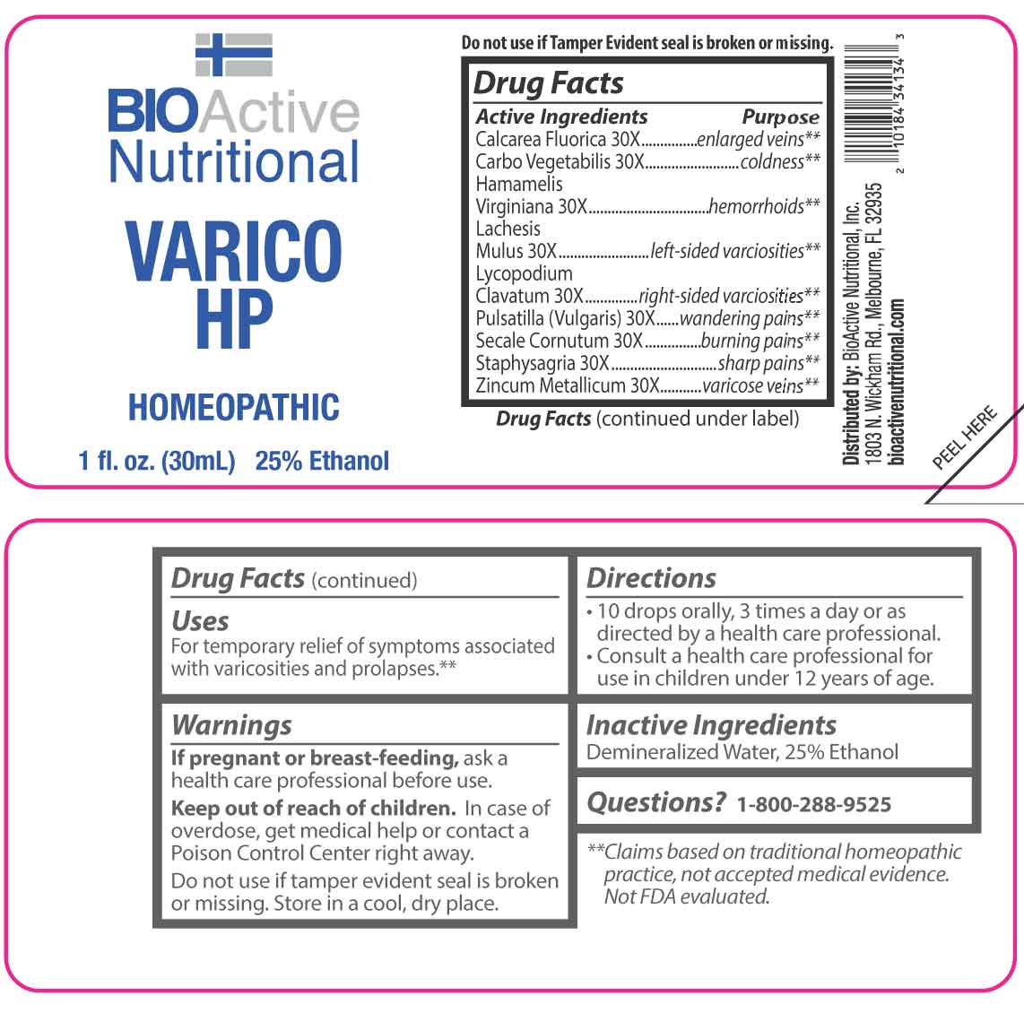 VARICO HP by is a Homeopathic medication manufactured, distributed, or labeled by BioActive Nutritional, Inc., Apotheca Company. Drug facts, warnings, and ingredients follow.