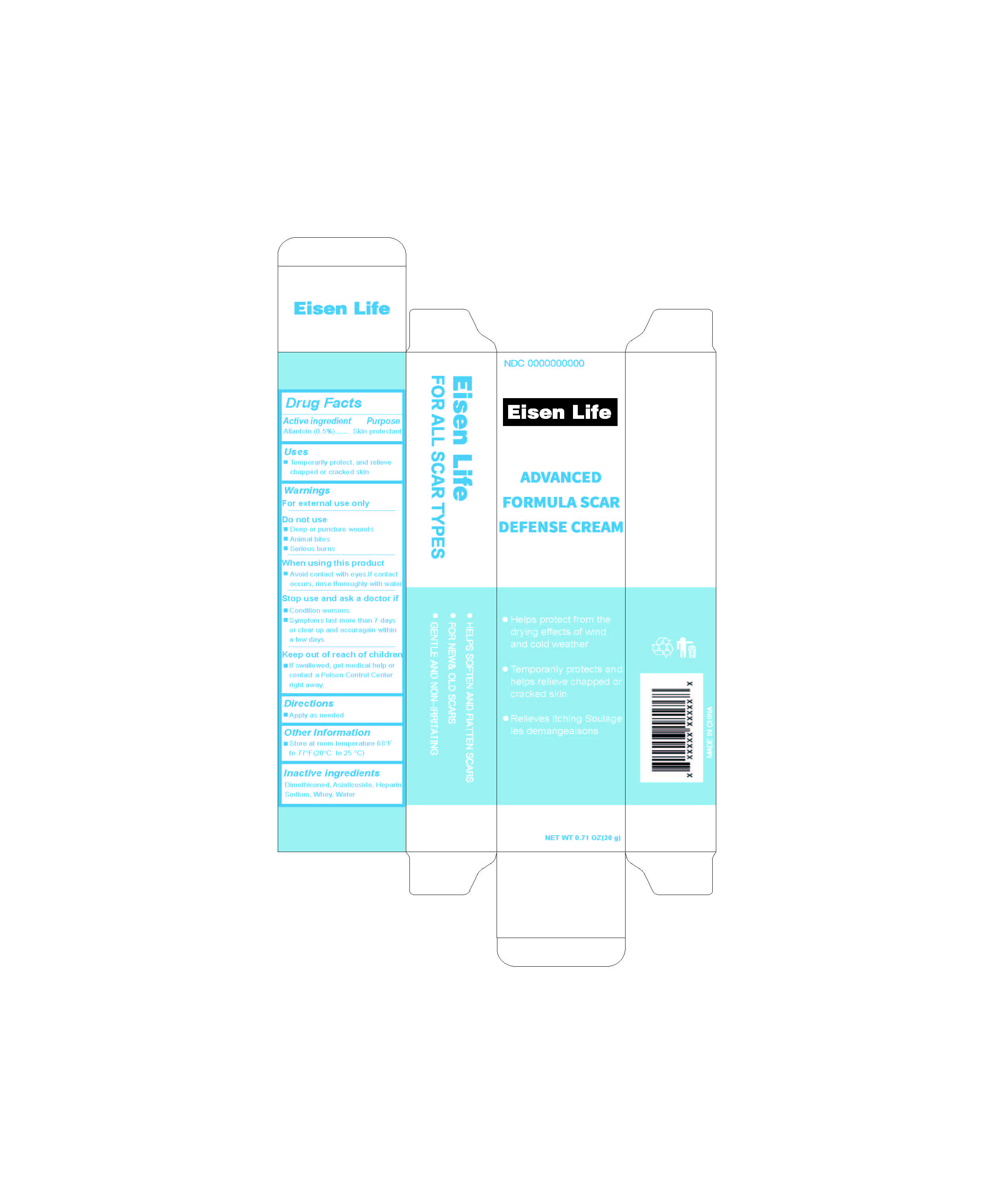 Advanced Formula Scar Defense Cream by is a Otc medication manufactured, distributed, or labeled by Yantai Aien Biotechnology Co., Ltd.. Drug facts, warnings, and ingredients follow.