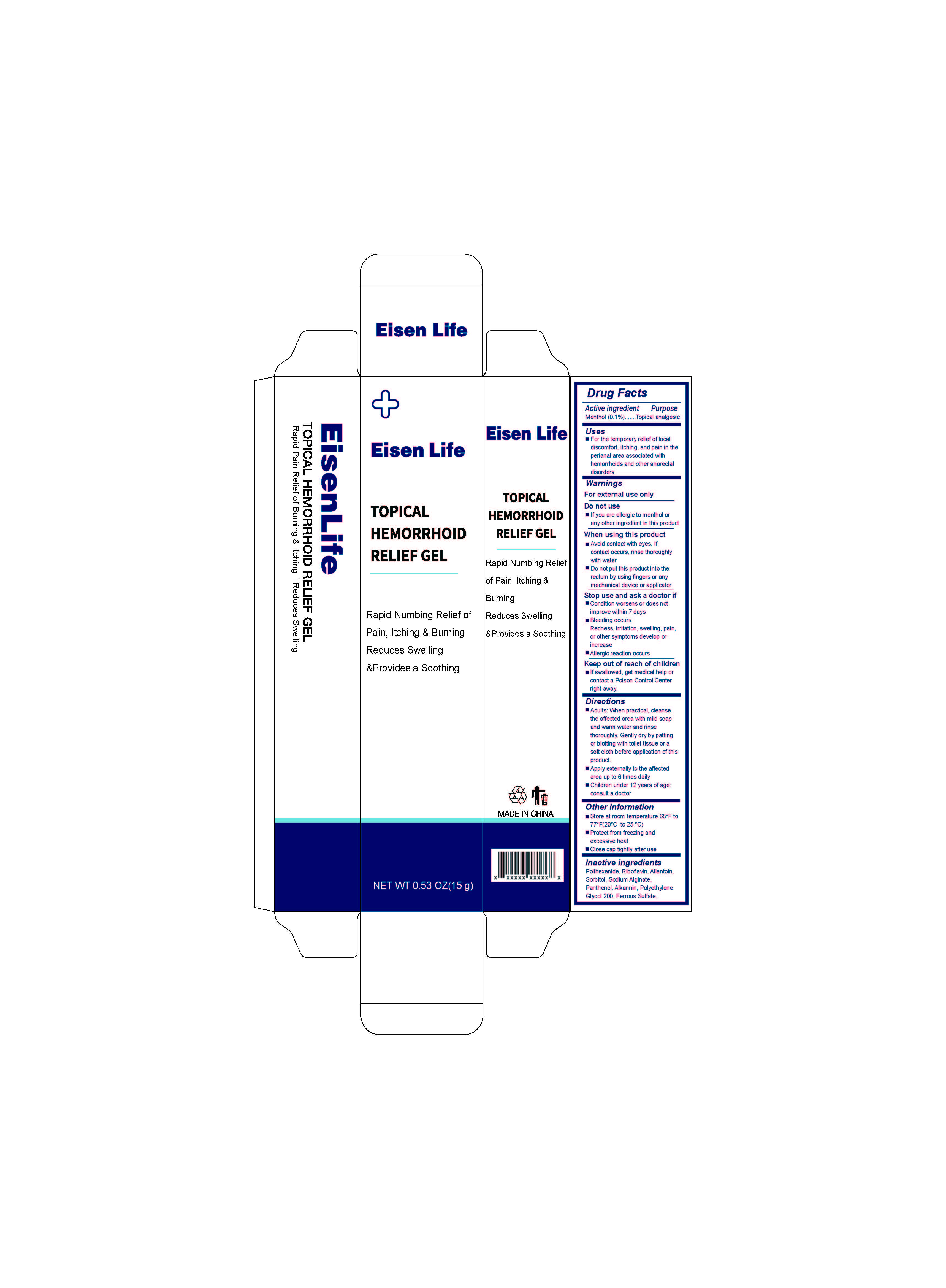 Topical Hemorrhoid Relief Gel by is a Otc medication manufactured, distributed, or labeled by Yantai Aien Biotechnology Co., Ltd.. Drug facts, warnings, and ingredients follow.
