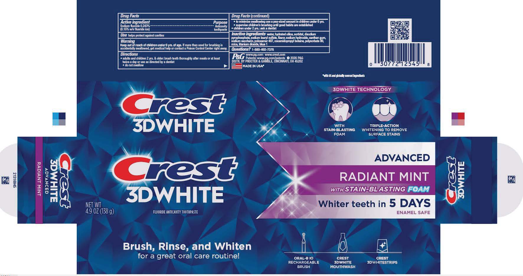 water, hydrated silica, sorbitol, disodium pyrophosphate, sodium lauryl sulfate, flavor, sodium hydroxide, xanthan gum, sodium saccharin, poloxamer 407, cocamidopropyl betaine, polysorbate 80, mica, titanium dioxide, blue 1