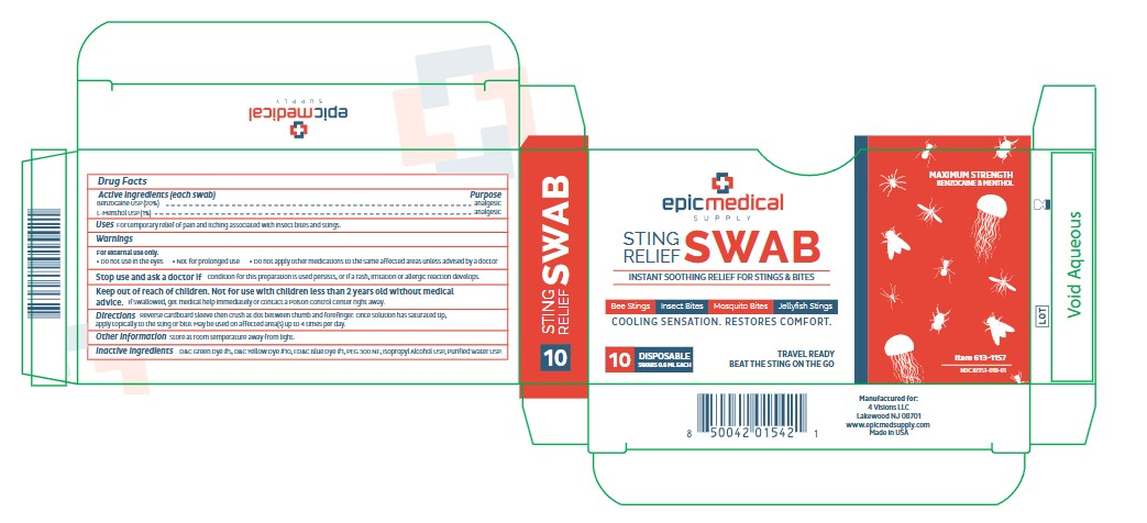 Reverse cardboard sleeve then crush at dot between thumb and forefinger. Once solution has saturated tip, apply topically to the sting or bite. May be used on affected area(s) up to 4 times per day.