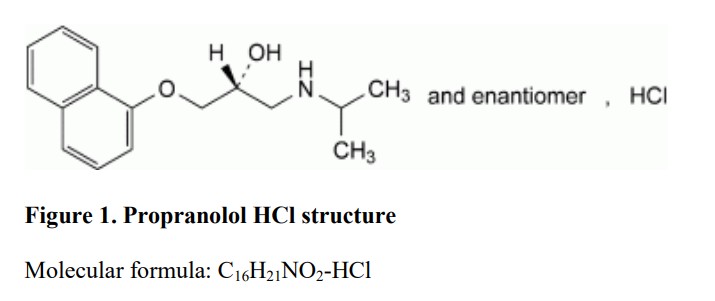 Propranolol is a nonselective beta-adrenergic receptor blocking agent possessing no other autonomic nervous system activity. It specifically competes with beta-adrenergic receptor stimulating agents for available receptor sites. When access to beta-receptor sites is blocked by propranolol, chronotropic, inotropic, and vasodilator responses to beta-adrenergic stimulation are decreased proportionately. Propranolol selectively blocks beta-adrenergic receptors, leaving alpha-adrenergic responses intact. There are two well-characterized subtypes of beta receptors (beta1 and beta2); propranolol interacts with both subtypes equally. Beta1-adrenergic receptors are found primarily in the heart. Blockade of cardiac beta1-adrenergic receptors leads to a decrease in the activity of both normal and ectopic pacemaker cells and a decrease in A-V nodal conduction velocity. Blockade of cardiac beta1-adrenergic receptors also decreases the myocardial force of contraction and may provoke cardiac decompensation in patients with minimal cardiac reserve. Beta2-adrenergic receptors are found predominantly in smooth muscle-vascular, bronchial, gastrointestinal and genitourinary. Blockade of these receptors results in constriction. Propranolol’s beta-blocking effects are attributable to its S(-) enantiomer. Pharmacodynamic drug interactions Alpha blockers: Co-administration of beta-blockers with alpha blockers (prazosin) has been associated with prolongation of first dose hypotension and syncope. Antidepressants: The hypotensive effect of MAO inhibitors and tricyclic antidepressants is exacerbated when administered with beta-blockers. Nonsteroidal anti-inflammatory drugs: Nonsteroidal anti-inflammatory drugs (NSAIDs) may attenuate the antihypertensive effect of beta-adrenoreceptor blocking agents. Monitor blood pressure.