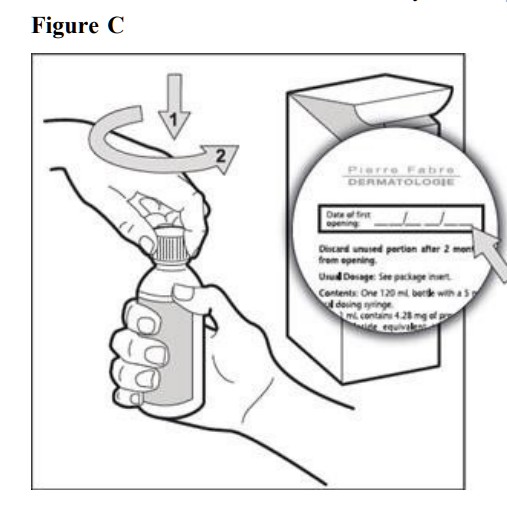 Step 4. Open the bottle of HEMANGEOL by pushing down on the plastic cap while turning the cap to the left (See Figure C). Write down on the box the date when you first open the bottle.