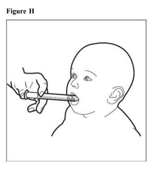 Step 9. Slowly squirt HEMANGEOL into your child’s mouth after placing the oraldosing syringe against the inside ofthe cheek (See Figure H). Keep your child in an upright position for a few minutes right after giving a dose of HEMANGEOL.