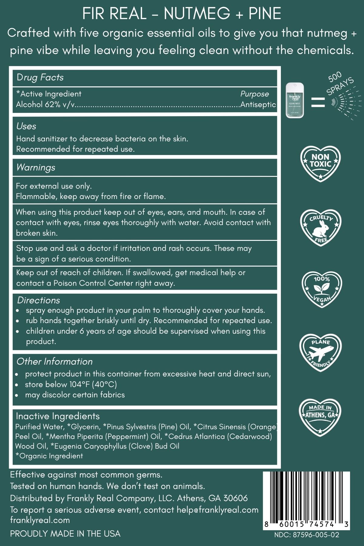 | FRANKLY REAL ORGANICS FIR REAL LEGEND CLEAN MIST HAND SANITIZER