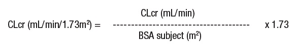 Then CLcr is adjusted for body surface area (BSA) as follows: